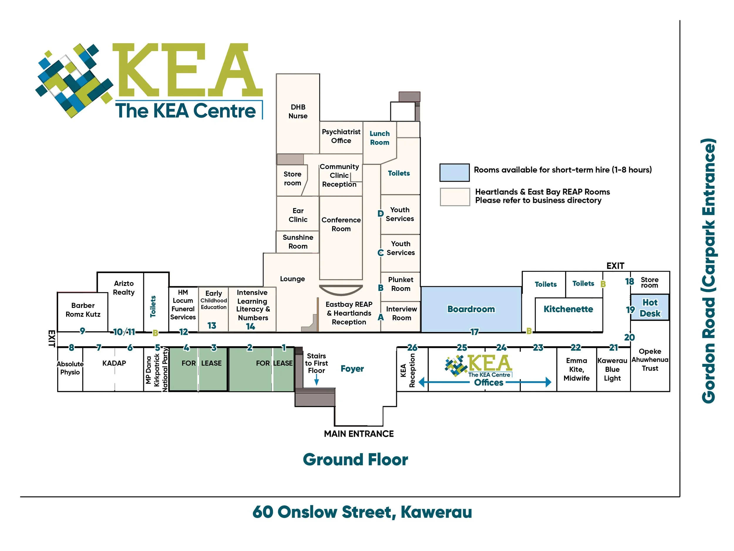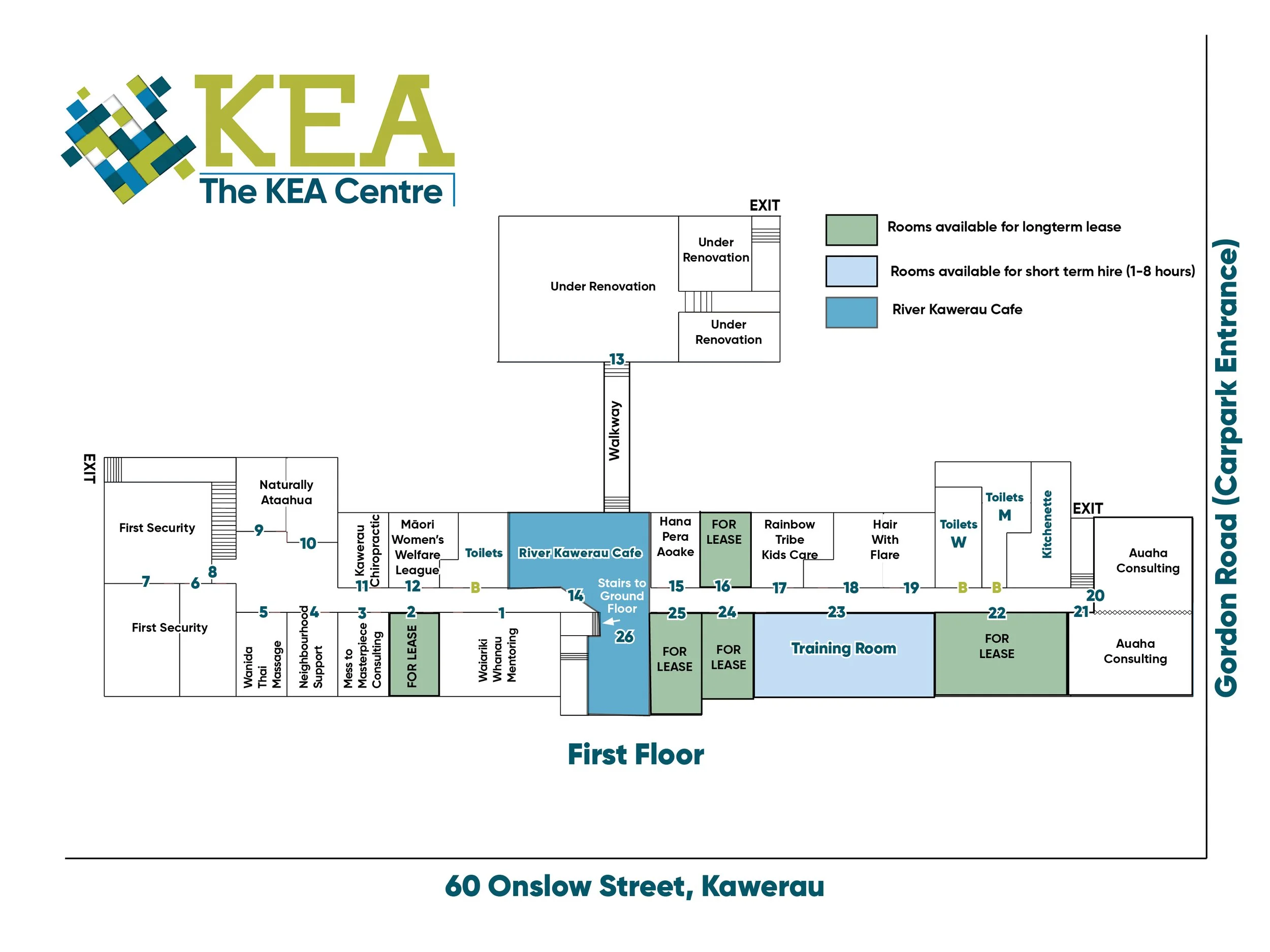 Features: With a view to Putauaki, and just down the corridor from River Kawerau Cafe this room would be the perfect place for an office for someone needing their own quiet room to work on their business.